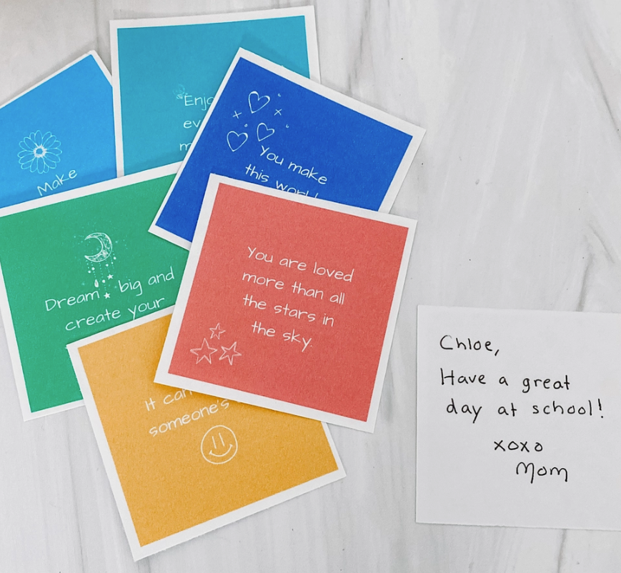 Ways to use: * leave love notes or notes of encouragement in your child's lunch box * bedside notes for your child to find when they wake up. * notes of encouragement taped to the bathroom mirror or left around the house for them to feel loved throughout the day