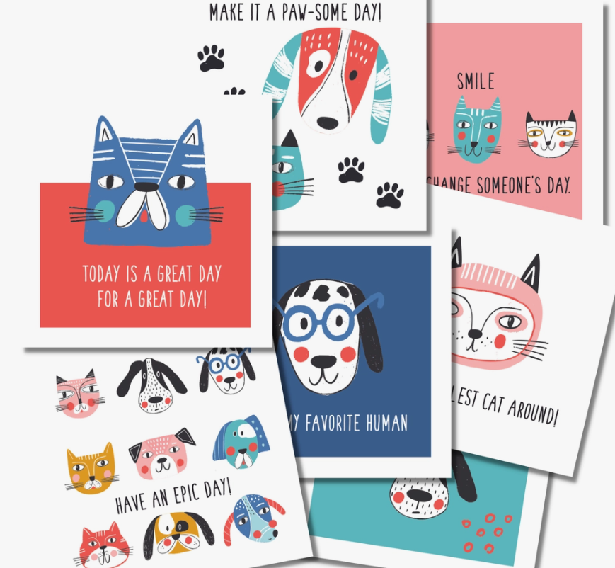 Set of 24 cards are printed on high quality card stock, allowing you to hand write a personalized message for your child. Choose your set. These cards are sure to bring a smile to your child's face when they discover it in their lunch bag or backpack.